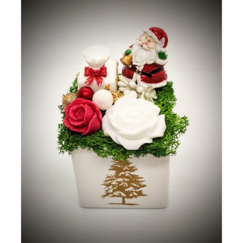 Szappanvirág csokor - kicsi - kerámia mikulással - fehér kis kaspóban Kézzel készített, illatos szappan csokrok, asztali díszek, egyedi szappanok és fürdősók