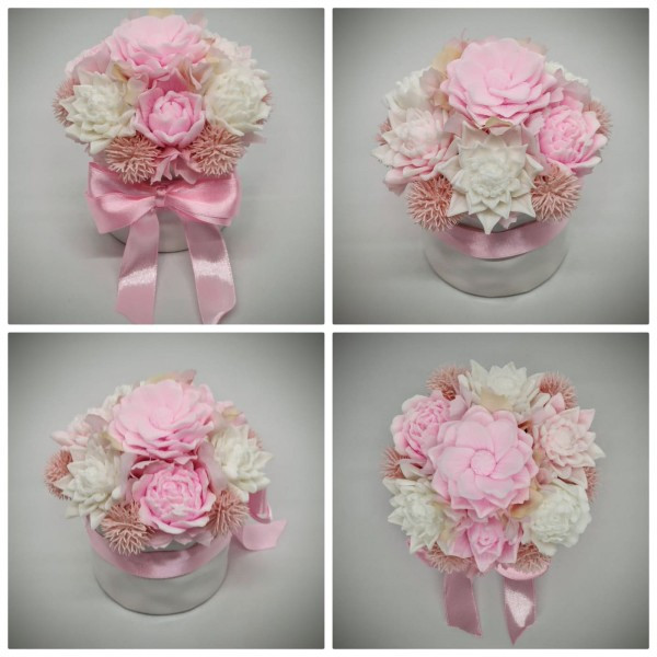 A szappant, amiből a virágok készülnek, egyedileg színezem, illatosítom és öntöm formába, majd ezekből az elkészült szépségekből állítom össze a csokrokat, boxokat.Választható szinekben, több különböző illattal rendelhető.