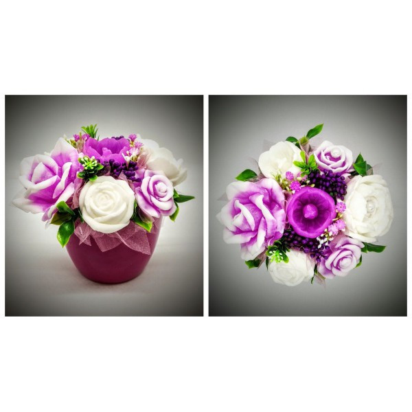 Szappanvirág csokor - közepes fukszia csokor - fukszia kaspóban Kézzel készített, illatos szappan csokrok, asztali díszek, egyedi szappanok készítése.