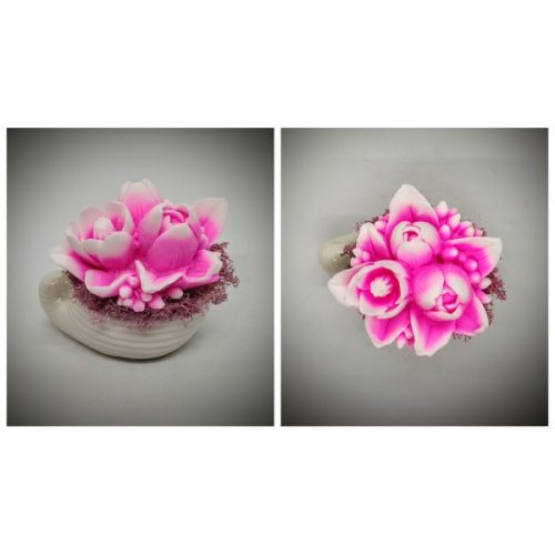 Szappanvirág csokor - pink tulipán csokor - kicsi fehér kagyló kaspóban Kézzel készített, illatos szappan csokrok, asztali díszek, egyedi szappanok és fürdősók