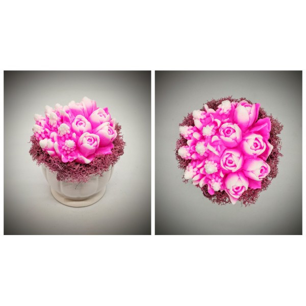 Szappanvirág csokor - pink tulipán csokor - kis kehely kaspóban Kézzel készített, illatos szappan csokrok, asztali díszek, egyedi szappanok és fürdősók