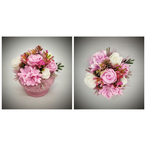 Szappanvirág csokor - rózsaszín csokor - kis rózsaszín kaspóban Kézzel készített, illatos szappan csokrok, asztali díszek, egyedi szappanok készítése.