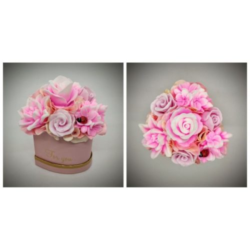 Szappanvirág csokor - Rózsaszín csokor - rózsaszín szívalakú dobozban
