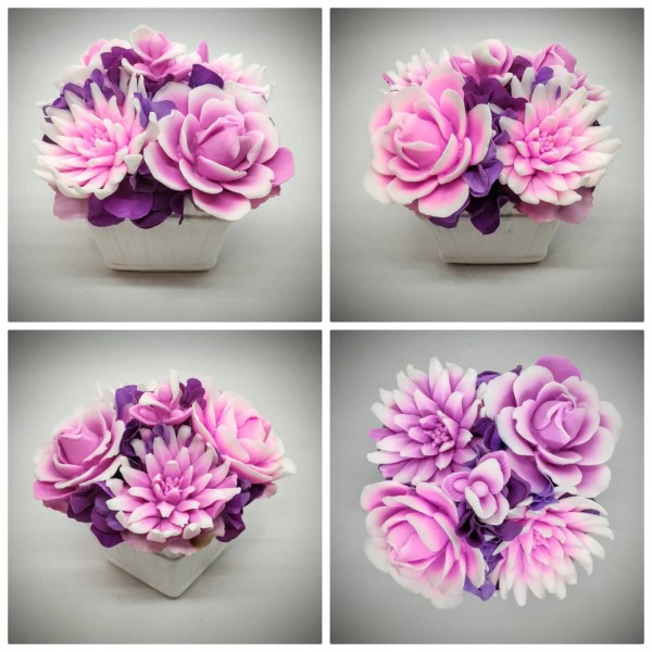 A szappant, amiből a virágok készülnek, egyedileg színezem, illatosítom és öntöm formába, majd ezekből az elkészült szépségekből állítom össze a csokrokat, boxokat.Választható szinekben, több különböző illattal rendelhető.