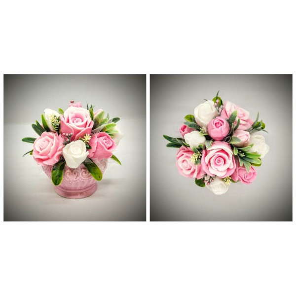 Szappanvirág csokor - rózsaszín rózsacsokor - kis rózsaszín kaspóban