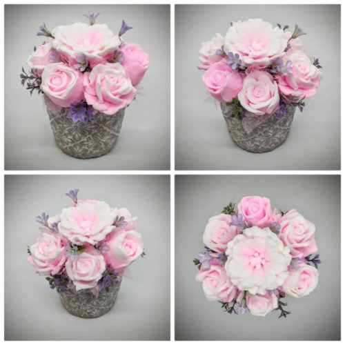 Szappanvirág csokor - rózsaszín szappanvirág csokor - kőkaspóban - 1. Kézzel készített, illatos szappan csokrok, asztali díszek, egyedi szappanok és fürdősók