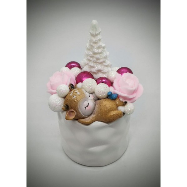 Szappanvirág csokor - rózsaszín-szappanvirág csokor - őzikével - fehér kör kaspóban Kézzel készített, illatos szappan csokrok, asztali díszek, egyedi szappanok készítése.