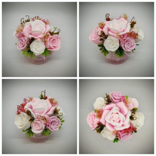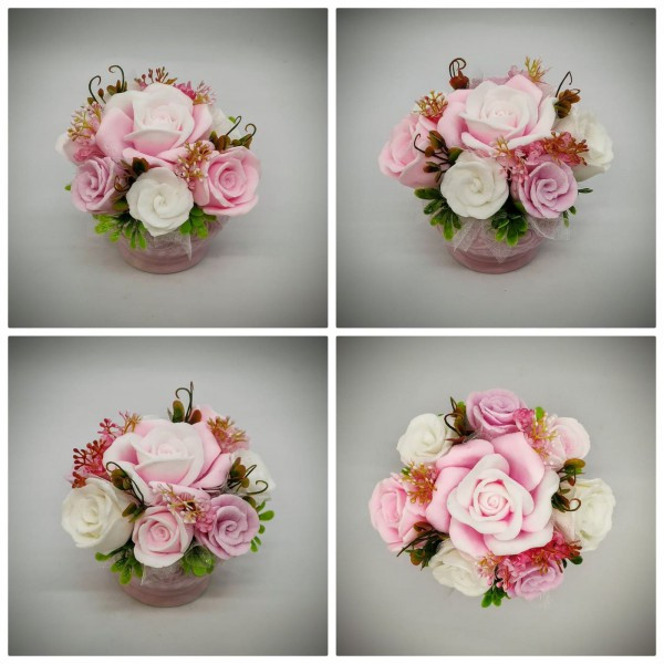 Szappanvirág csokor - Rózsaszín szappanvirág csokor - rózsaszín kis kaspóban - 2. Kézzel készített, illatos szappan csokrok, asztali díszek, egyedi szappanok készítése.
