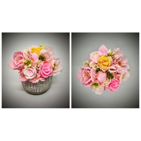 Szappanvirág csokor - rózsaszín vegyes csokor - kis kőkaspóban 2.