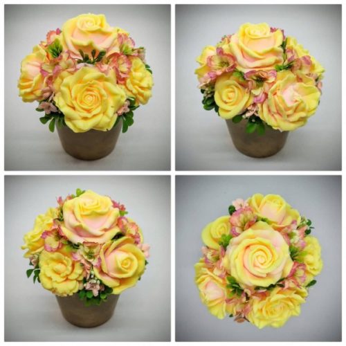 Szappanvirág csokor - Sárga rózsa - szappanvirág csokor - antikolt arany kaspóban - 1. Kézzel készített, illatos szappan csokrok, asztali díszek, egyedi szappanok készítése.