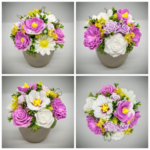 A szappant, amiből a virágok készülnek, egyedileg színezem, illatosítom és öntöm formába, majd ezekből az elkészült szépségekből állítom össze a csokrokat, boxokat.Választható szinekben, több különböző illattal rendelhető.