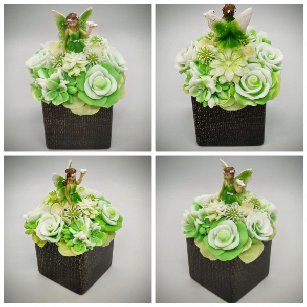 Szappanvirág csokor - zöld tündér szappanvirág csokor - fekete kocka kaspóban Kézzel készített, illatos szappan csokrok, asztali díszek, egyedi szappanok készítése.