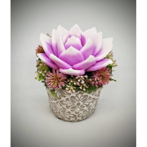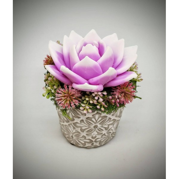 Szappanvirág - Fukszia-fehér szappanvirág - kis kőkaspóban - 10. Kézzel készített, illatos szappan csokrok, asztali díszek, egyedi szappanok és fürdősók
