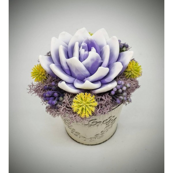 Szappanvirág - Lila-fehér szappanvirág - fém kaspóban - 3. Kézzel készített, illatos szappan csokrok, asztali díszek, egyedi szappanok és fürdősók
