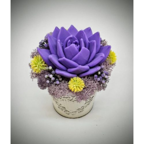 Szappanvirág - Lila szappanvirág - fém kaspóban - 4. Kézzel készített, illatos szappan csokrok, asztali díszek, egyedi szappanok és fürdősók