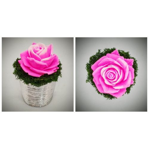 Szappanvirág - pink rózsa - ezüst színű kis kaspóban