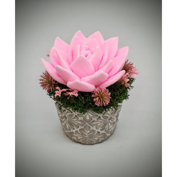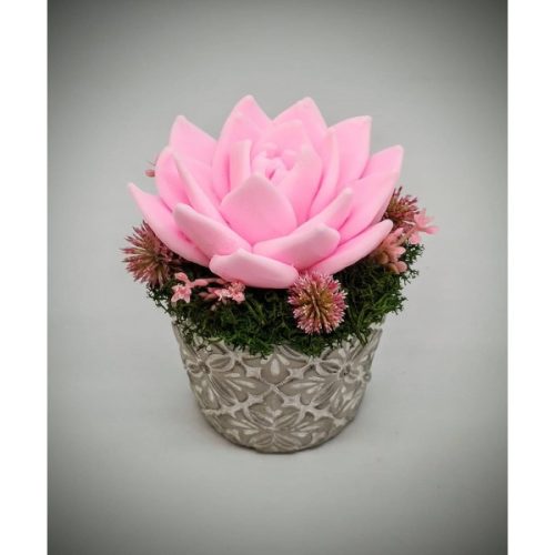 Szappanvirág - Rózsaszín szappanvirág - kis kőkaspóban - 7. Kézzel készített, illatos szappan csokrok, asztali díszek, egyedi szappanok és fürdősók