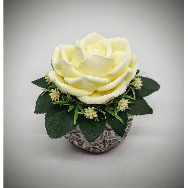Szappanvirág - Sárga rózsa szappanvirág - kis kőkaspóban - 1. Kézzel készített, illatos szappan csokrok, asztali díszek, egyedi szappanok és fürdősók