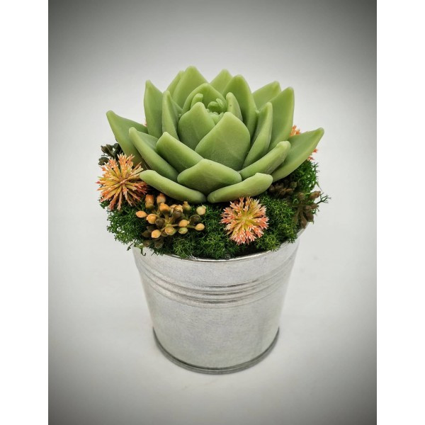 Szappanvirág - Szukkulens - pozsgás - ezüst fém kaspóban - 1. Kézzel készített, illatos szappan csokrok, asztali díszek, egyedi szappanok és fürdősók