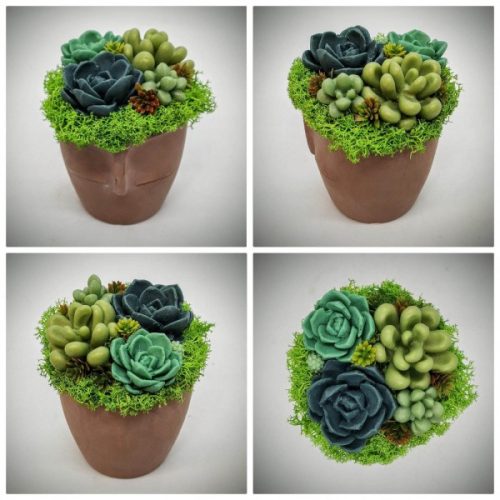 Szappanvirág - Szukkulens - pozsgás szappanvirág csokor - barna arc kerámia kaspóban - 2. Kézzel készített, illatos szappan csokrok, asztali díszek, egyedi szappanok és fürdősók