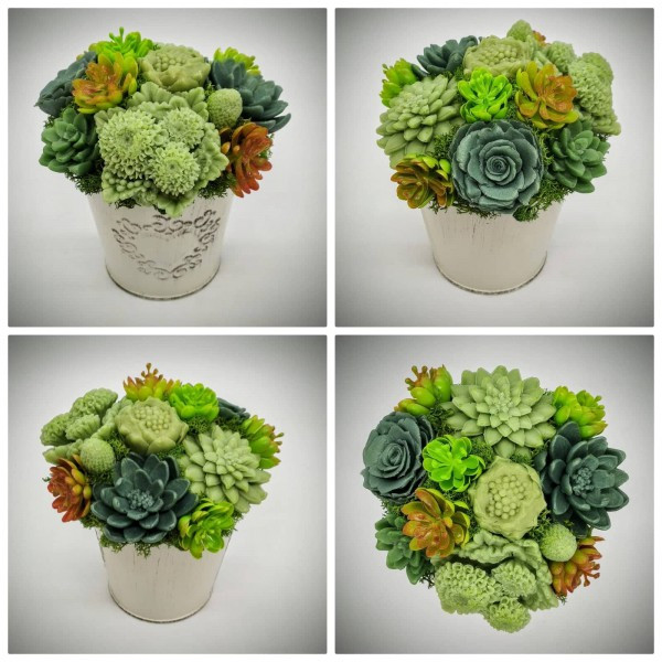 Szappanvirág - Szukkulens - pozsgás szappanvirág csokor - fém kaspóban - 2. Kézzel készített, illatos szappan csokrok, asztali díszek, egyedi szappanok és fürdősók