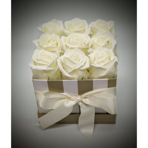 Szappanvirág - vajszínű szappanrózsa box - csíkos dobozban